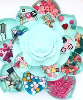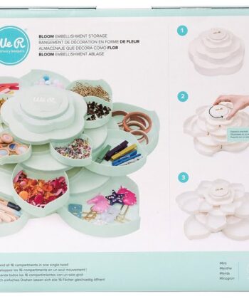 O Organizador Bloom Storage We R – Menta é ideal para otimizar a organização dos materiais pequeninos de seu ateliê e deixá-lo impecável. Ele é compacto, bonito e bem funcional: um único giro expande a flor em 16 compartimentos, que possibilita a visualização simultânea e organizada de todos os seus itens favoritos.